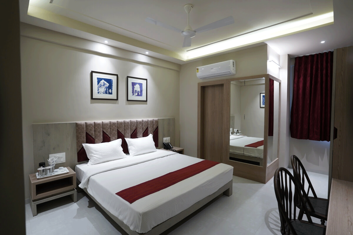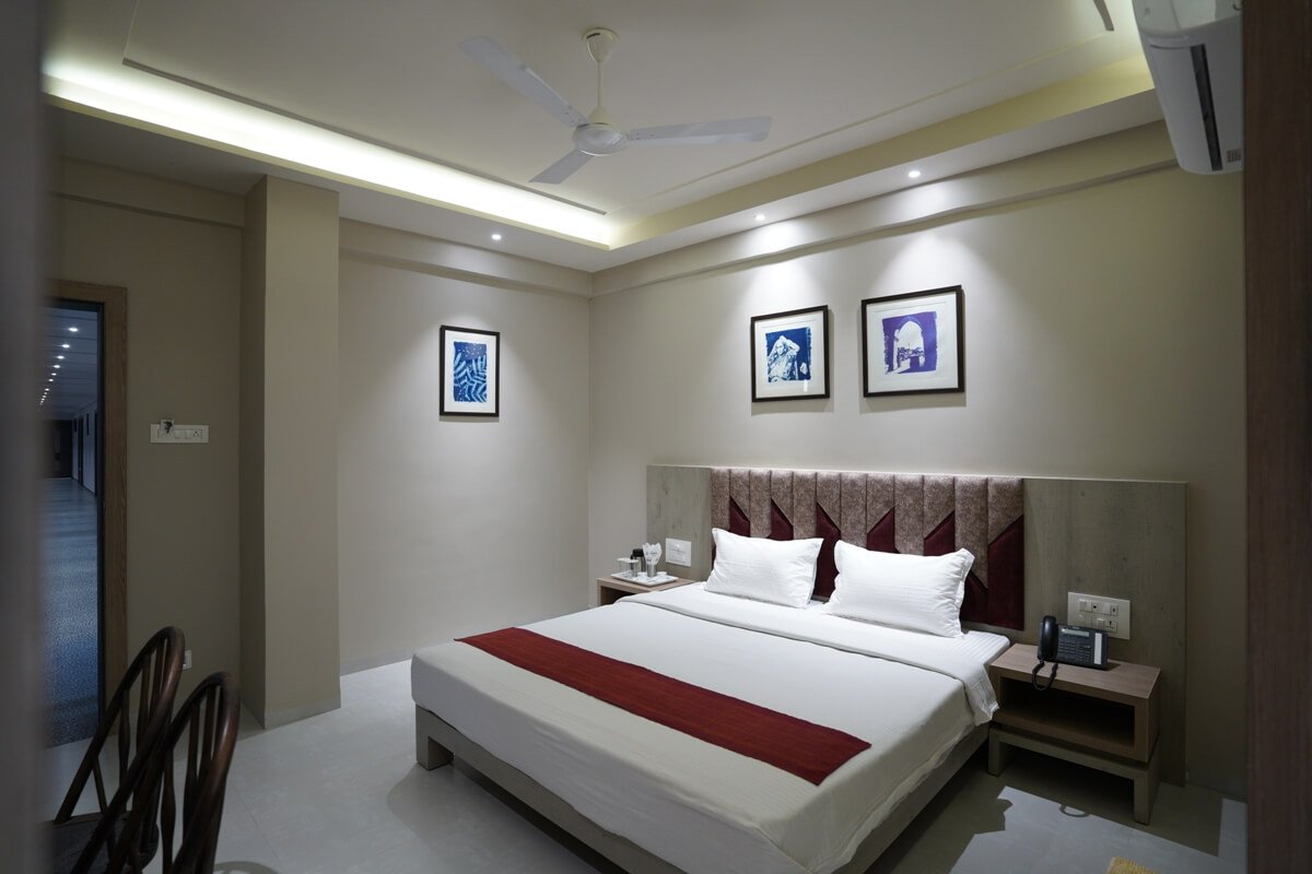 - Amenities: Air Conditioning, Attached Bathroom, Bellboy service, Clean service, Complimentary Breakfast, Contact less check-in, Doctor on Call, Free Parking, Newspaper, Telephone, Wi-fi